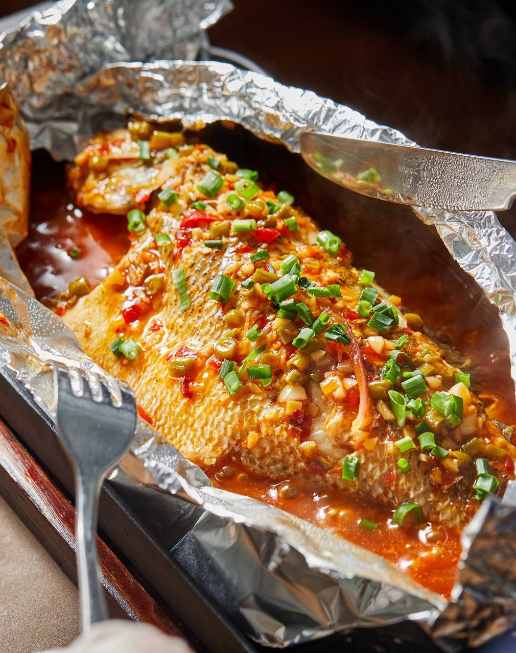 铁板锡纸包鲈鱼
